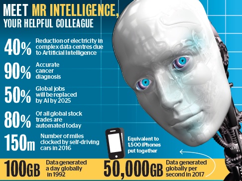 While studies have shown that AI will replace 50 per cent of all jobs by 2025, Dr Noah Raford, CEO of Dubai Future Foundation, said the technology will be more like a helpful colleague. More info