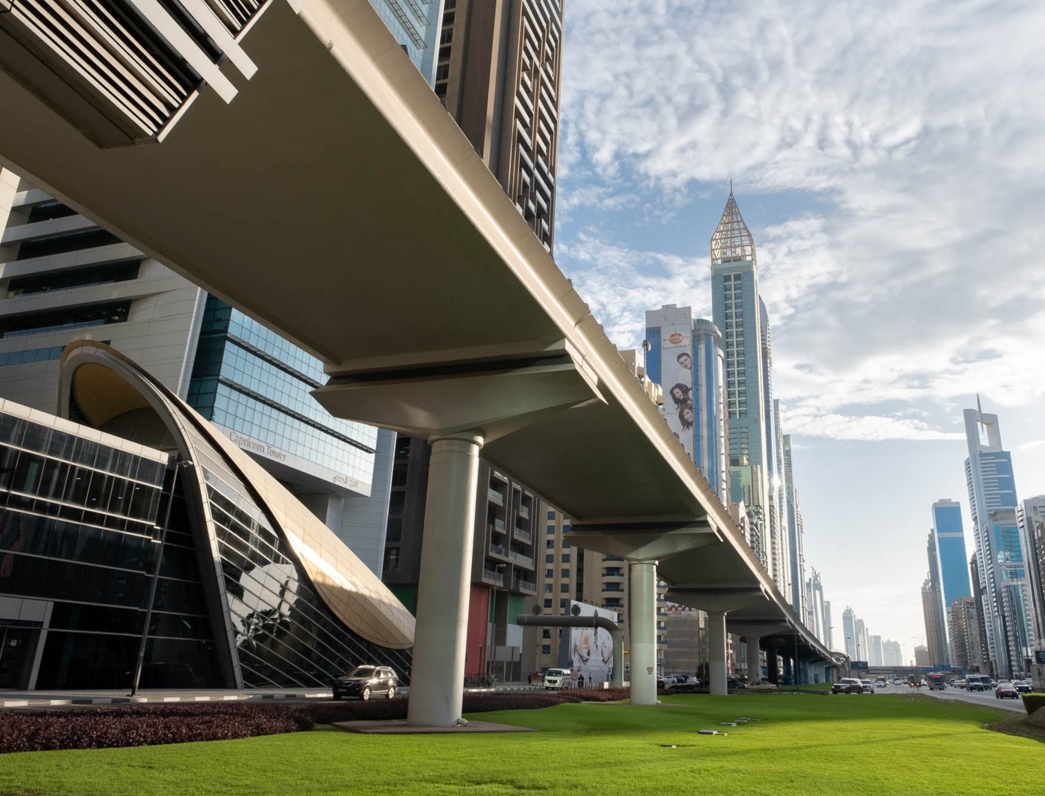 Dubai’s decade-old metro system is no different. The bullet-shaped stations lie above ground like golden space pods and the trains race through the center of the city, weaving past skyscraper after skyscraper.