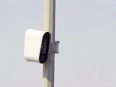 A video showing a small camera mounted on a lamp post flashing a light at a passing car and a message saying that this is a new camera that catches people on their phone has been circulating on social media.