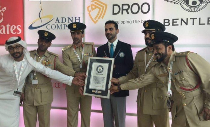 Major General Abdullah Khalifa Al Marri, Commander in Chief of Dubai Police, received the Guinness certificate from the Guinness Book of World Records for the fastest police patrol in the world, using the Bugatti Veyron sports car, wam reported on Monday.