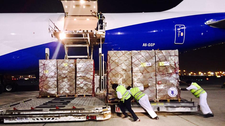The aircraft has been loaded with more than 90 metric tonnes of key relief items made available by International Humanitarian City (IHC) members. Among the relief and survival items on board are food and non-food supplies including mobile storage units, lighting equipment, water purification kits, and pool testers. More info
