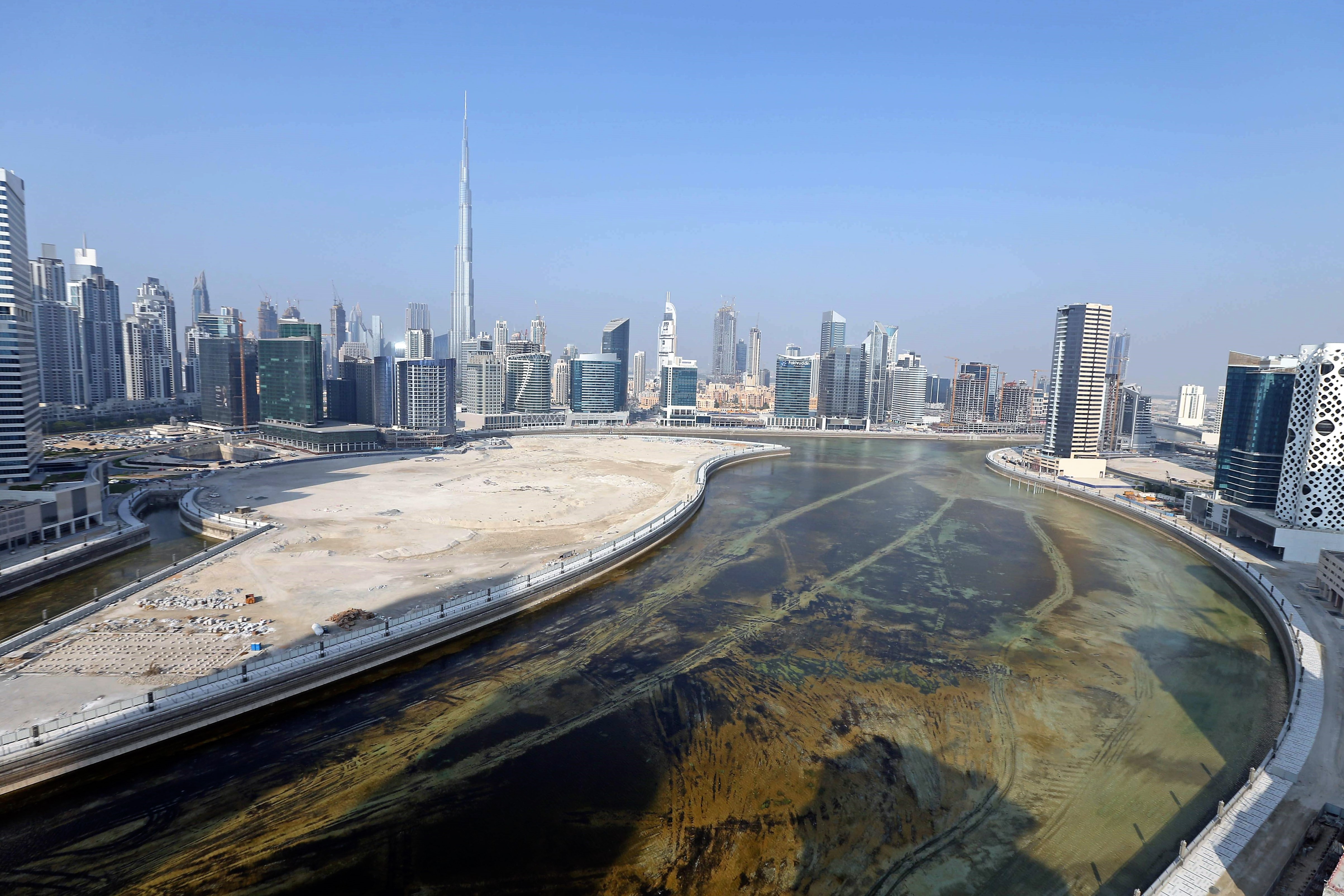 Photo: Water has been released into the Dubai Water Canal along Business Bay. The RTA is now adding finishing touches to the canal by removing sedimentation and refilling it from the sea. – Photo by Dhes Handumon