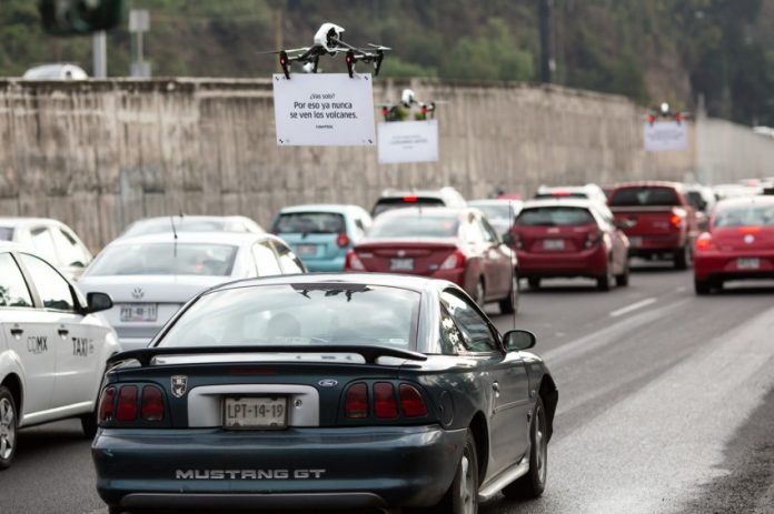In an effort that’s equal parts creative advertising and environmental awareness, drones are being utlized by ride-sharing company Uber, in Mexico City.