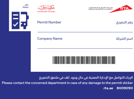 “The permit is a sticker affixed to the vehicle displaying the company name and the permit number. To avail the service, the company is prompted to visit RTA’s website and open a new account. After signing up, the user can click on ‘Business Sector Services – Naqel Service’, and apply for the permit. A text message and an e-mail message shall be sent to the company conveying approval or otherwise. In case of approval, the representative of the company has to visit the premises of the Public Transport Agency to receive the permit and pay the prescribed fees.