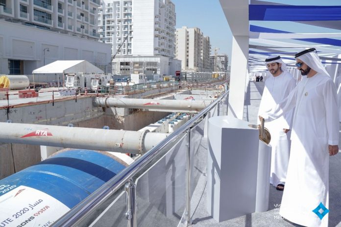 HH Sheikh Mohammed bin Rashid Al Maktoum, Vice-President and Prime Minister of the UAE and Ruler of Dubai, has launched the tunnel drilling works of the Route 2020 Project, which extends the Dubai Metro Red Line 15 km from Nakheel Harbour and Tower Station to the site of Expo 2020.