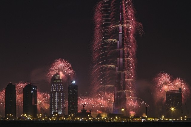 The annual display at the world’s tallest building is this year one of 160 locations across the emirate to host displays at the turn of midnight.