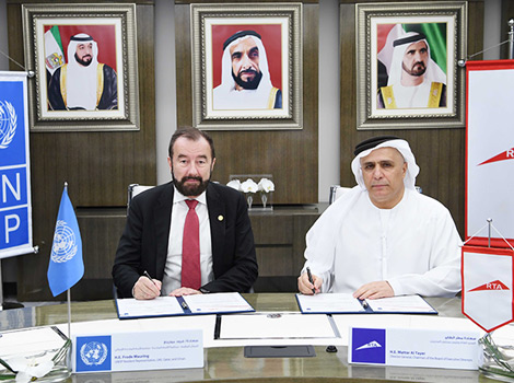 HE Mattar Al Tayer, Director-General and Chairman of the Board of Executive Directors of RTA signed the MoU on behalf of RTA, and HE Frode Mauring, UNDP Resident Representative to the United Arab Emirates, signed it on behalf of the UNDP.