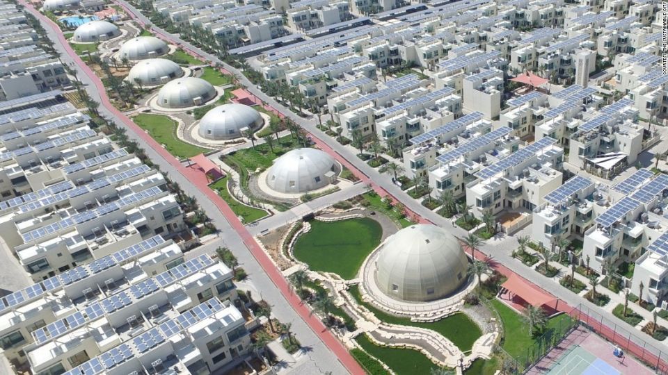 Construction on the $354 milliom The Sustainable City began in 2013. The city is surrounded by a 30-metre-wide green buffer zone of 2,500 trees to reduce air and noise pollution.