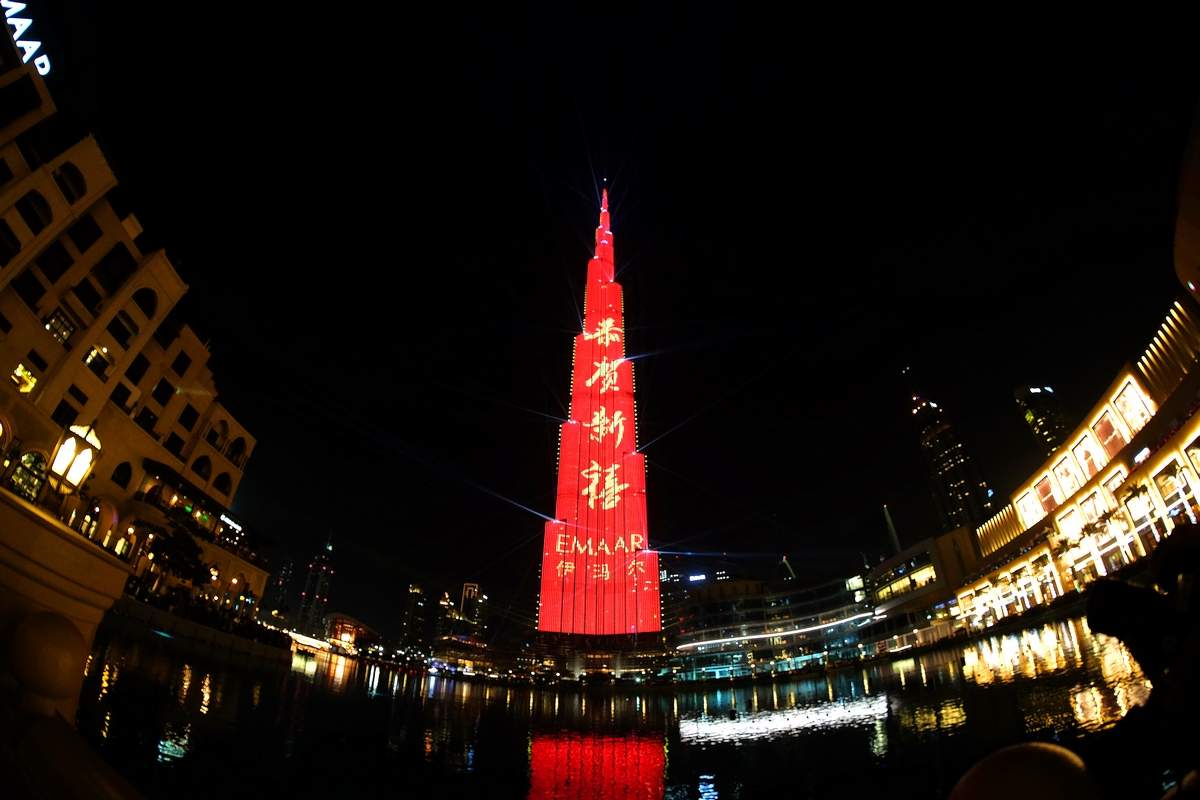 A dragon-themed light and sound show lit up the Burj Khalifa to mark the Chinese New Year in Dubai.